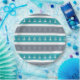 Un elegante diseño náutico con líneas blancas, azules, grises y anclas con ruedas de dirección (timones).