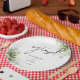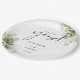 Esta elegante placa de papel para fiesta de compromiso con flores de vegetación puede personalizarse con tu información en tipografía chic. Diseñado por Thisisnotme©