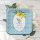 Un diseño elegante de fiesta de despedida de soltera con fondo de azulejos azules y una taza de limones.