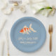Esta elegante y moderna plantilla de platos de papel para despedida de soltera presenta un elegante koi de acuarela nadando a través de un fondo azul sereno. La frase “Ella es una captura afortunada” está delicadamente escrita en letra minimalista y refinada, agregando un toque de fantasía y encanto. Perfecto para celebrar el amor y la suerte, este diseño combina la sofisticación costera con simbolismo juguetón, ideal para una novia que es verdaderamente única.