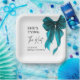 Plato De Papel Ella Está Atando El Nudo Azul Turquesa Reunión Nup