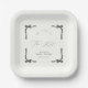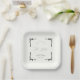 Elegantes placas de papel de "She's Tying the Knot" con un arco negro de moda y una tipografía elegante sobre un fondo blanco y fresco. Perfecto para servir golosinas en una ducha de novia, una ducha de matrimonio o una fiesta de soltera, especialmente para celebraciones en blanco y negro o con motivos de arco. Estos platos desechables facilitan la limpieza y le aportan un toque moderno y coordinado a su decoración de eventos. Par con tazas, servilletas y carteles para un aspecto completo.