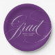 Añade un toque personalizado a tu fiesta de graduación con nuestros platos de papel para graduación de personalizados. Las placas de papel de graduación presentan "Grad" en un elegante guión de caligrafía blanca con fondo morado. Personalice las matrículas agregando el nombre del graduado y el año de graduación.