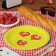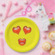 Estas placas de fiesta de papel presentan un diseño de emoji de amor.