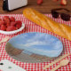Este plato de papel presenta una escena de verano de la playa Hammonasset en Madison, Connecticut. Hay servilletas para hacer juego. ¡Genial para las ocasiones de verano!