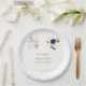Plato De Papel Encantador Oro Azul Rosa Flores Gemelos Bautismo S