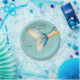 Un ilustracion de acuarela de la cola de una sirena muy bien detallado, pasando de verde azulado profundo a un vibrante color púrpura rosado. Cada escala se pinta de manera compleja, creando un patrón fascinante de superposición. La elegante curva de la cola se desvanece en tonos suaves, como la puesta de sol, añadiendo un toque de ensueño. Perfecto para una fiesta de cumpleaños, invitaciones o decoraciones del chica.