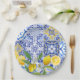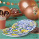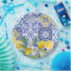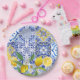 Este limón acuarela encontró su tema principal de la brisa de los platos mediterráneos de papel de ducha de novia con azulejos mediterráneos de color azul y blanco.El color azul polvoriento, amarillo, azul marino y blanco es una paleta de colores perfecta para una decoración elegante y formal de fiesta de ducha de novia.