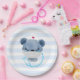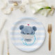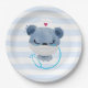 Placas de papel con un lindo ilustracion de un oso azul usando un gorra de enfermeras con un poco de corazón en ella. También con una máscara protectora y un estetescopio azul.