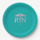 Plato De Papel Enfermera inscrita RN Caduceus en turquesa vibrant