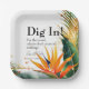 Presentamos la Planta de Papel Redondo Aves de Paraíso Bliss, con un cautivador fondo verde oscuro adornado con un marco delicioso que muestra la exótica belleza de las aves del paraíso de la colección Aves de Bliss. Este plato en particular lleva un toque de humor con la leyenda: "¡Ingrese! ¡Que conste, las calorías no cuentan para los bodas!" Debajo del pie de foto, se presentan alegremente los nombres de las parejas, acompañados por la fecha de la ceremonia. Este diseño alegre y visualmente impresionante añade un toque único y entretenido a la placa de papel, convirtiéndola no sólo en un elemento funcional sino también en un accesorio encantador y divertido que aporta alegría a la colección Birds of Paradise Bliss.
