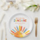 Platos de papel para bebés con luz solar, con un sol alegre y colorido, y una plantilla de texto para personalizar.