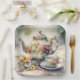 Una Colorida Tea Pot Con Flores Y Té Cup Para Una Elegante Placa De Papel Fiesta De Té