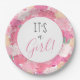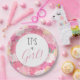 Estos modernos y frescos platos florales de papel rociado rosado para una bebé seguro que serán un gran éxito mientras celebras la llegada de tu chica de recién nacido. Estos platos rociados por un bebé rosado presentan un suave patrón floral rosado con tipografía de moda que dice "¡Es un Chica!" que se puede personalizar. Mezclar y emparejar con otros productos en esta bonita colección de "Es un Chica!" de rociadores de bebé.