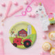 Plato De Papel Escena de granja con gallo de canto en el tractor