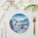 Una hermosa escena de invierno con montañas e iglesia, editar texto