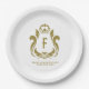Plato De Papel Escudo de oro Monogramado