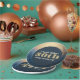 Estos platos azules tienen purpurinas dorados. El fondo azul profundo contrasta con los acentos dorados. El purpurina capta la luz, añadiendo un toque de brillo. La combinación de azul y oro le da un toque lujoso a cualquier evento.