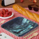 Esta inquietante y gráfica exposición de fotos, una alta, de aspecto antiguo, de hierro forjado, entrada a la puerta. En el patio, al pie de la empinada escalera, una figura fantasmal, envuelta en un paño negro, en lo alto de las escaleras, en una colina, es una enorme mansión de aspecto gótico, envuelta en una densa niebla, resaltada por esta espeluznante frase: "¡Disfruten de un estupendo feriado", en abundancia, goteo y fuente negra!