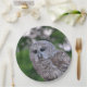 Este plato de papel presenta una lechuza de paja que vive en el bosque de Connecticut.