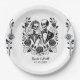 Plato De Papel Esqueleto floral de rosa negra y blanca para boda
