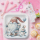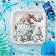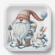 Un capo de acuarela con barba y un gorra de invierno está esquiando con un lindo conejito con copos de nieve.