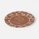 Está Atando el Nudo Platos de Papel Personalizados para Despedida de Soltera en Terracota + Paleta de Arena. Estilo de caligrafía elegante a mano con un patrón de lazo lindo. Simplemente personalice la plantilla con el título de su evento y la fecha. © Kimbellished, LLC
