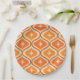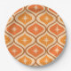 Se trata de un elegante patrón de estreno atómico moderno de mediados de siglo colocado en óvalos naranja y ámbar sobre fondo beige. Es un gran plato de papel para cualquiera que ame los diseños geométricos retro