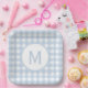 Atrévete a ser diferente con este clásico patrón de cuadros gingham en azul polvo elegante con un lugar circular blanco para agregar tu monograma en una fuente de bloque elegante azul a juego. Reemplaza la inicial con la tuya... elige tu fuente o elimina el monograma y agrega tu propio diseño. Perfecto para baby showers, bodas, aniversarios, reuniones y almuerzos.