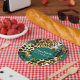 Platos de papel inspirados en safari con patrones de piel de animales, motivos de palmeras verdes oscuras y acentos de manchas marrones y parches negros – perfectos para fiestas WILD especiales.