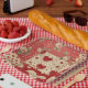 Platos de papel Vintage Shabby Chic. Bonitos diseños de patchwork rojo. Hermoso diseño de moda. Perfecto para fiestas, picnics, barbacoas y más !! Tema romántico femenino con rosas rojas, corazones y lunares.