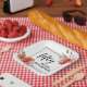 Este llamativo diseño acuático presenta elegantes adornos rojos y exuberante vegetación, creando un efecto visualmente impresionante. Con la opción de personalizar del texto y la edad, estas placas de papel le permiten hacerlas únicas suyas. Cree un tema fiesta cohesivo y elegante incorporando estas placas de papel de personalizable en su decoración de cumpleaños.