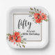 Plato De Papel Estiloso Red Poppy Flora 50 cumpleaños