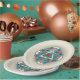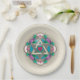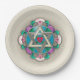 Estas placas de papel que coinciden con el más reciente tablero de embutidos de Shabbos de Jewbilee. La pintura digital original de Leslie Sigal Javorek ofrece la ilusión de una cerámica tirada a mano, una mandala de estilo Art Nouveau, corazón dentro de Star of David, rodeado de flores de estilo muy elegante.