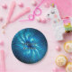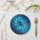 Una imagen fractal monocromática que se asemeja a un grabado intrincado de una estrella multiarmada o multialada de plástico o metalizado azul. Personalizar agregando su propio texto.