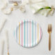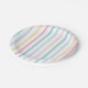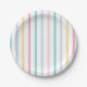 Estos platos de papel de rayas color arcoiris pastel le dan un toque de diversión a su próximo fiesta o evento.