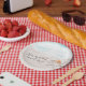 Platos de fiesta personalizados de playa de arena blanca Estrella de mar Océano azul.