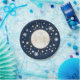 Esté en la luna y placa de papel temática de las estrellas en marina de guerra y oro