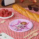 Plato De Papel Estrella morada y rosa chica de pelo oscuro fiesta