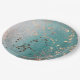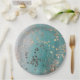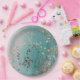 Plato De Papel Estrellas Doradas Brillantes sobre Azul Turquesa
