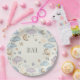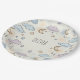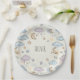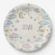 Estos platos de papel personalizados cuentan con un ilustracion esquemático de estrellas lúdicas, lunas de media luna y nubes esponjosas con una suave acuarela pastel.