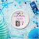 Estrellas rosadas Feliz Cumpleaños Fiesta Chica de Papel Fotográfico Plates. Este colorido y divertido plato personalizado de fiesta de cumpleaños es perfecto como decoración de fiesta de cumpleaños chica. Personalizó los platos con su nombre, foto y edad.