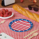 Platos de rayas rojas y blancas con bordes estelares azules