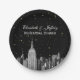 Diseñado como NYC Skyline With the Emp St Building with Starry Sky, DIY Choose Your Background Color Paper Plates Personalizable Invitaciones y accesorios con una mirada grabada en Nueva York que presenta el edificio Emp St en primer plano, así como otros rascacielos de NYC con un fondo estelar. Puede cambiar el color de fondo del negro inicial a un color de su elección haciendo clic en el enlace "Personalizar". Cambie el color del texto a uno que complemente su diseño. Este producto forma parte de un conjunto de diseños de correspondencia que son de fácil personalizable para muchas ocasiones y eventos. Si necesita tarjetas RSVP separadas que coincidan, notas de agradecimiento, sellos de goma, imanes u otros accesorios, por favor revise nuestros otros listados. Todos los derechos reservados