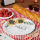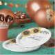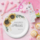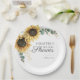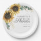 Crea platos de papel modernos con flores de girasol con esta plantilla adorable que presenta un hermoso ramo floral rústico, ramas con efecto dorado y tipografía simple moderna.