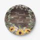 Los platos rústicos de papel boda de los graneros de girasol son perfectos para celebrar una boda en verano o otoño. Las placas de coordinación complementan la recepción de tu boda, la cena de ensayo o la ducha de novia. Estos platos están decorados con girasoles acuáticos, aliento de bebé, vegetación y eucalipto sobre un fondo de madera. Esta paleta color bonito es perfecta para una boda en el jardín. Haga de este plato su propia persona incluyendo sus nombres y toda la fecha de su boda.