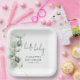 Plato De Papel Eucalyptus Botanical Script Baby Shower