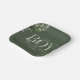 El tema de la ducha de bebé oscura con el texto "BOY" en beige rodeado de vegetación eucalipto. El fondo es verde oscuro.