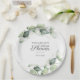 Eucalyptus Script Greenery Botanical Desayuno de novia Platos de papel que puedes personalizar fácilmente con los detalles de tu desayuno