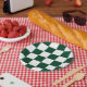 Placa de papel con un patrón de cuadros verde y blanco. Perfecto para cualquier reunión.